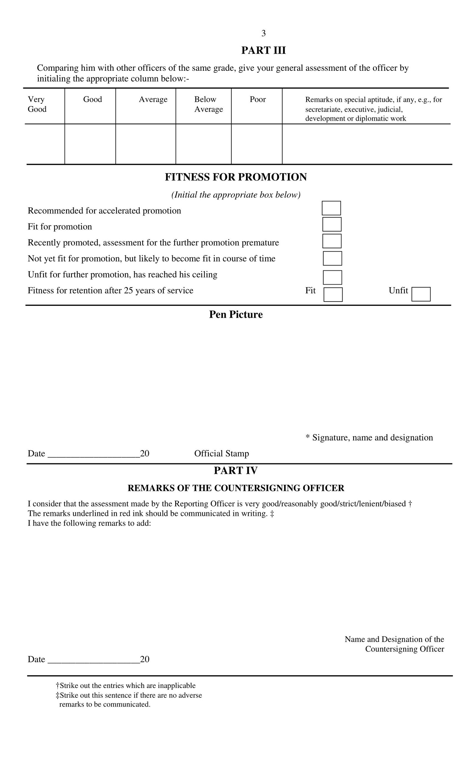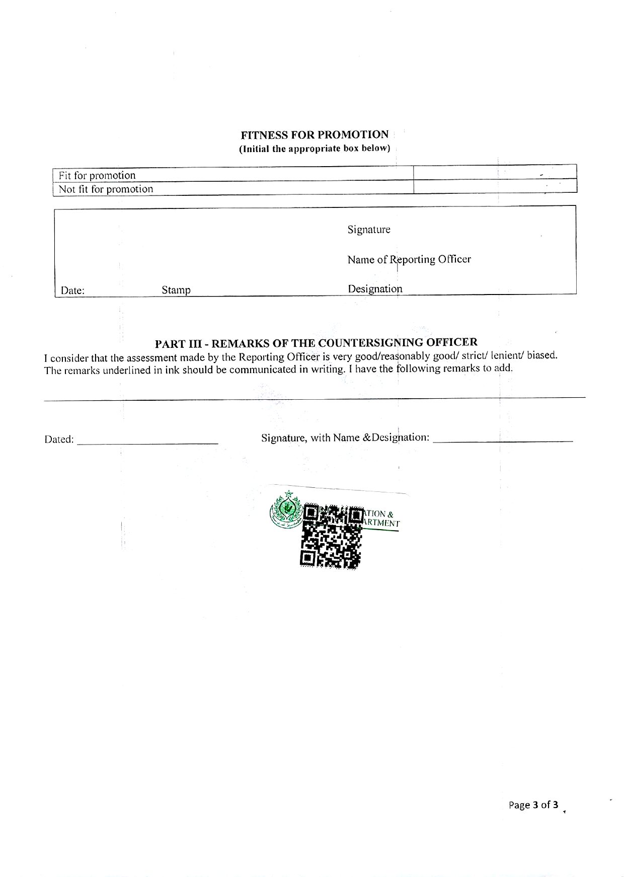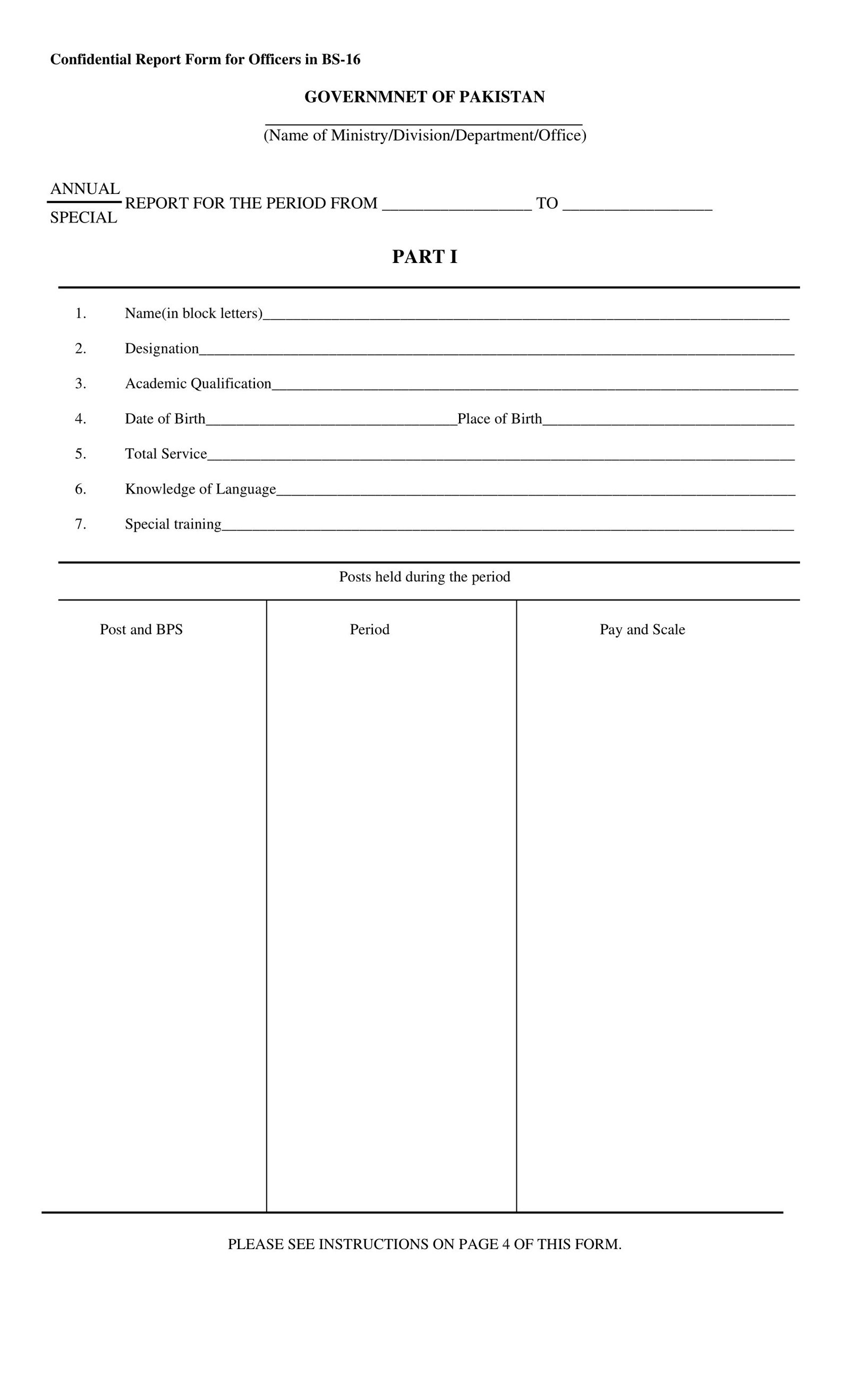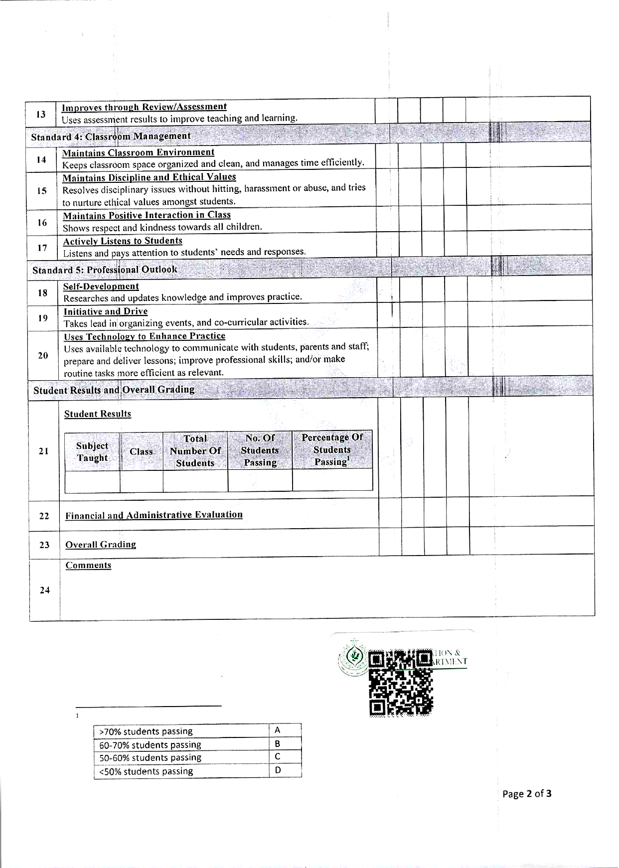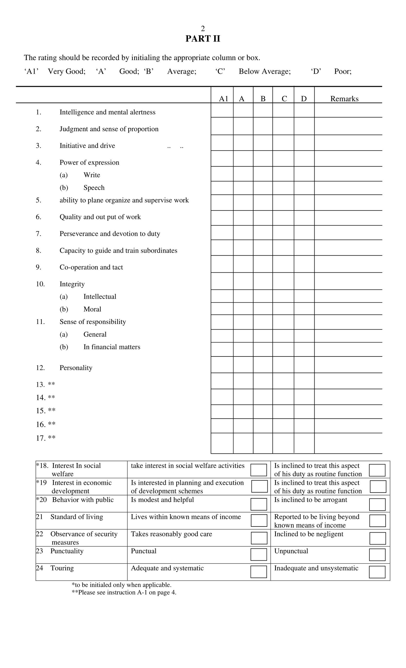 The Annual Confidential Report (ACR) was the previous standard for evaluating 16 Grade Government officers, police, teachers, and doctors in Pakistan . It contained questions that were not specific to the teaching profession, such as typing speed, intelligence & mental alertness.